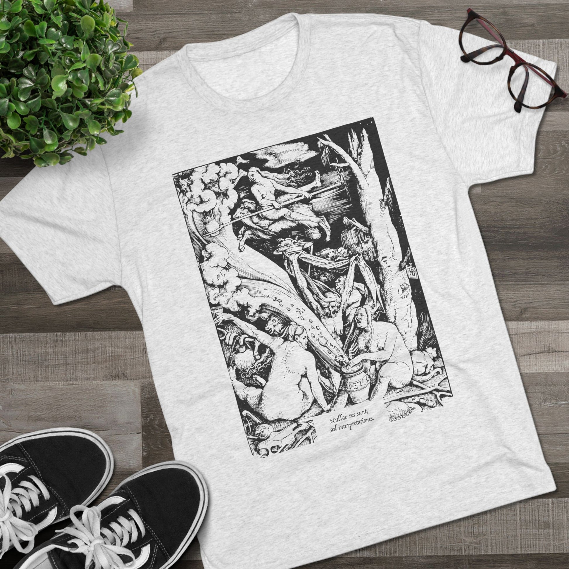 New "Witches' Sabbath" T-shirt, featuring a meticulously reproduced wood carving by the renowned Renaissance artist Hans Baldung.